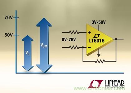 運算放大器提供50µV精準度和0V至76V的輸入范圍