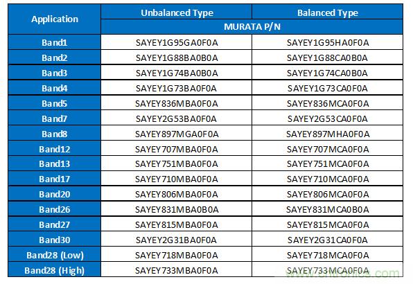 表1所示的就是目前村田正在推進(jìn)的1814尺寸SAW雙工器的產(chǎn)品一覽。