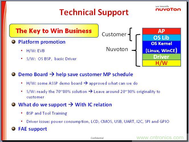 這個是我們目前的所謂的開發(fā)的門檻,其實以新唐的MCP來講,我們做的比較簡單,我們的整個系列都有提供,新唐側重于在驅動方面。另外我們公司在深圳科技園也有定期的培訓課程。在深圳的本地,我們也有技術支持。