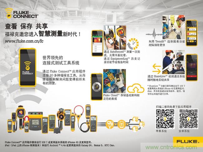 【導(dǎo)讀】福祿克測試儀器(上海)有限公司日前宣布,推出世界領(lǐng)先的連接式測試工具系統(tǒng)Fluke Connect™,跨入智慧測量新時代!新推出的 Fluke Connect™ 系統(tǒng),可將測量數(shù)據(jù)從測試工具傳送到智能手機(jī)和云空間,使維護(hù)團(tuán)隊的溝通、安全性和工作效率得到改善。
