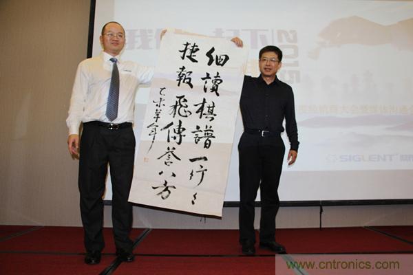 在頒獎典禮的最后,來自長春市百金通科貿(mào)有限公司的唐總為本次經(jīng)銷商大會題字留念,精湛的書法技藝贏得了滿堂彩,美好的祝愿溫暖人心。