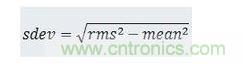rms值現(xiàn)在變高了,因?yàn)榘似屏?。知道均值和rms值后就可以計(jì)算sdev值了。