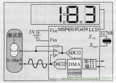 系統(tǒng)中,醫(yī)療傳感器模塊主要實現(xiàn)以下幾種功能:體溫、血壓、血氧和血糖的測量等。其中,體溫測量集成了北京邁創(chuàng)公司所生產(chǎn)的YSI體溫探頭,血壓測量集成了邁創(chuàng)公司的KNM無創(chuàng)血壓測量模塊,血氧測量集成了邁創(chuàng)公司的SWS01血氧測量模塊。