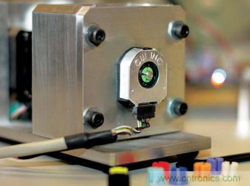 除了利用磁場而非光束之外,磁編碼器的結構與光學編碼器類似。磁編碼器用磁盤代替帶槽光輪,磁盤在一組磁阻傳感器上轉動,在這些傳感器中產生響應,傳遞給信號-調節(jié)前端電路,用于確定軸的位置。雖然這種編碼器的耐用性較高,但是容易受到電機產生的電磁干擾影響,準確性不如光學編碼器。