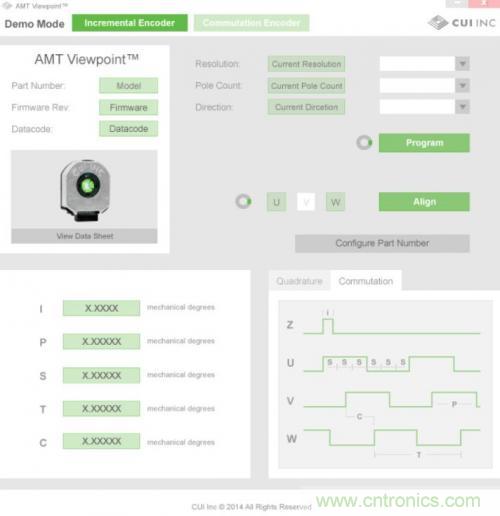 在演示模式,用戶能夠使用GUI,以及進行編碼器相關運作,就像連接實際的編碼器一樣,這是在購買或實際使用之前熟悉編碼器和工具的便利方法。最終,GUI還支持創(chuàng)建可定購的部件編號,用于特定的編碼器型款,這包括輸出格式、套(孔)適配器,以及安裝基座等選項。