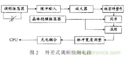 如圖3所示,由于采用了最新的大規(guī)模集成電路,電感傳感器的檢測電路比較簡單,且集成電路采用了新的調(diào)制解調(diào)方法和算法,減少了以前的檢測外差式調(diào)頻檢測電路方法由于傳感器的激勵信號的相角、頻率以及幅值漂移對檢測結(jié)果的影響,大大進(jìn)步了檢測精度和穩(wěn)定性。