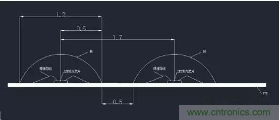 從物理空間尺寸來(lái)看,COB封裝在設(shè)計(jì)燈珠直徑時(shí)不再受制于支架尺寸的限制,如下圖所示: