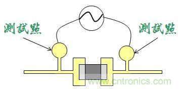 但是如果讓這些探針直接接觸到板子上面的電子零件或是其焊腳,很有可能會壓毀一些電子零件,反而適得其反,所以聰明的工程師就發(fā)明了「測試點」,在零件的兩端額外引出一對圓形的小點,上面沒有防焊(mask),可以讓測試用的探針接觸到這些小點,而不用直接接觸到那些被量測的電子零件。