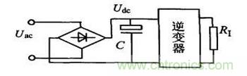 隨著各行各業(yè)控制技術(shù)的發(fā)和要求可操作性能的提高,許多場(chǎng)合的用電設(shè)備都不直接使用通用交流網(wǎng)提供的交流電作為電能來(lái)源,而是通過(guò)各種形式對(duì)其進(jìn)行變換,從而得到各種所需的電能形式。它們的幅度、頻率、穩(wěn)定度及變化方式因用電設(shè)備的不同而不同,如電動(dòng)機(jī)變頻調(diào)速器、綠色照明電源、開關(guān)電源等等,它們接入電壓網(wǎng)后,也有一個(gè)交流電源的利用率問(wèn)題。上述產(chǎn)品有一個(gè)共同特點(diǎn)就是:利用橋式整流器和大容量的濾波電容實(shí)現(xiàn)AC/DC轉(zhuǎn)換,由工頻市電獲得直流電壓;雖然交流輸入電壓基本上未出現(xiàn)波形失真,但輸入電流卻不再保持正弦波形,而是呈不連續(xù)的峰值較高的脈沖。如圖1所示的橋式整流濾波電路。只有當(dāng)輸入交流電源Uac的瞬時(shí)值高于電容C的電壓時(shí),整流二極管才導(dǎo)通,Udc基本上維持不變,可見(jiàn)二極管的導(dǎo)通角明顯小于180°,輸入電流波形嚴(yán)重失真。