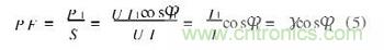 為了表征交流電源的利用率,在電工學(xué)中引入功率因數(shù)PF(PowerFactor)這個(gè)術(shù)語(yǔ),定義為有用功率P和視在功率S之比值,即