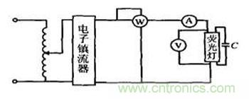 電工學(xué)和電路原理課程中有測(cè)試熒光燈電路功率因數(shù)實(shí)驗(yàn),通常功率因數(shù)測(cè)量有兩種方法:一是利用功率因數(shù)表;二是利用圖2所示的三表法,即功率表、電壓表、電流表。有的用電子鎮(zhèn)流器與電感式鎮(zhèn)流器啟動(dòng)熒光燈做比較實(shí)驗(yàn),讓學(xué)生明白提高線路功率因數(shù)的意義,但在做比較實(shí)驗(yàn)時(shí)主要存在兩個(gè)問(wèn)題: