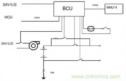 那么動力電池是如何與系統(tǒng)整合的呢?圖3為電池系統(tǒng)原理框圖,他主要包括BCU(電池主控制單元)、HCU(上位機/控制面板)以及MMU(電池從控單元)。首先BCU通過CAN1接收來自HCU的上位機命令,直接控制總負、正接觸器和預充繼電器,每組MMU通過CAN2總線將數(shù)據(jù)發(fā)送到BCU,BCU作出統(tǒng)一管理并將數(shù)據(jù)發(fā)送到HCU。管理系統(tǒng)主要的故障包括電池組/電池單元過壓及欠壓、過流、過溫、CAN通訊異常、單元控制故障等。