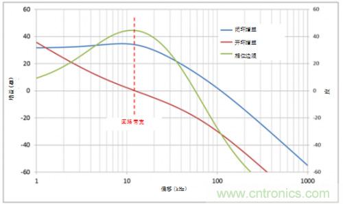 如果設(shè)計目標(biāo)為100kHz回路帶寬,45度相位邊限,當(dāng)伽馬值限制為1時,您最多只能得到79kHz的回路帶寬。然而,如果您能接受更高的伽馬值,如伽馬值等于8,則可以實現(xiàn)設(shè)計目標(biāo)。此時,回路帶寬為96.6kHz,相位邊限為43.4度。