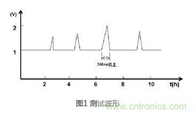整個振動試驗(yàn)時長8個小時,在整個過程中連接器可能會出現(xiàn)0~幾十次失效區(qū),時長是300ns以上,幅值大小不確定(正常情況下電平為1V)。