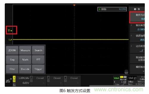 設(shè)置觸發(fā)方式為【普通】,將觸發(fā)電平調(diào)到合適的位置,等待小概率異常信號到來。