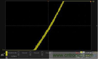 在停止?fàn)顟B(tài)下波形不進行采集,也就是停止?fàn)顟B(tài)無論垂直檔位怎么變化,仍然會保持停止時(200mv/div)的垂直精度 8mv,所以當(dāng)把波形的垂直方向放大 4 倍時(50mv/div),那么采樣點與采樣點之間的垂直距離就會變大,當(dāng)然這僅僅只是進行數(shù)字化放大,示波器此時會進行插值保持,插值保持下波形會以階梯的形式連接,這也是產(chǎn)生鋸齒的原因。