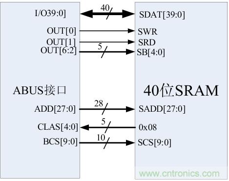 表4,40位SRAM接口連接表