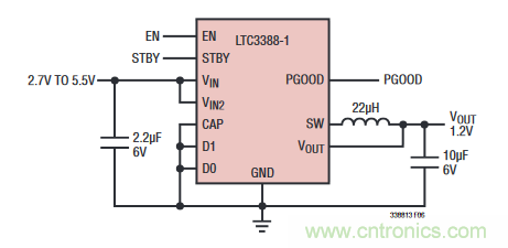 圖 1:簡(jiǎn)便的 LTC3388-1 典型低壓應(yīng)用電路