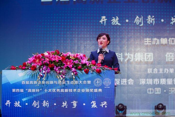 1月8日下午6:30開始的頒獎慶典分別由深圳市質量管理與檢測促進會執(zhí)行會長、深圳市電子商會副會長、深圳市半導體與照明協(xié)會副會長、湖南工業(yè)大學工商管理碩士研究生導師、倍通檢測集團創(chuàng)始人總裁鄧華麗女士、深圳市南山區(qū)科技創(chuàng)新局劉石明局長、深圳市電子商會創(chuàng)會會長王殿甫會長、中科為集團董事長諸華軍先生致開場辭。