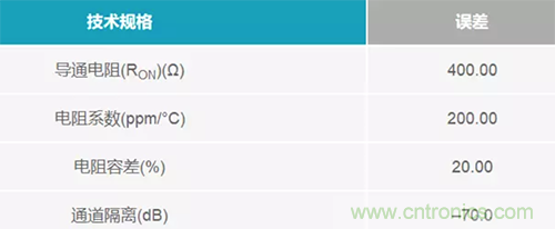 多路復(fù)用器的誤差一般少于放大器。在各種多路復(fù)用器直流誤差中,導(dǎo)通電阻和通道隔離是影響最大的誤差。表 2 列出了在使用多路復(fù)用器時(shí)應(yīng)考慮的誤差。