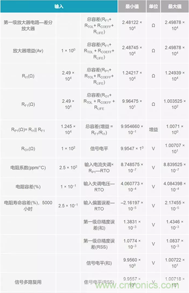 往下,在表格左側(cè),把所有誤差細(xì)分到各電阻級。電阻誤差也細(xì)分到了各個(gè)級,以便于了解相應(yīng)的權(quán)衡情況。右側(cè)所示為在信號流進(jìn)流出各級時(shí)連讀計(jì)算和累計(jì)計(jì)算的誤差。