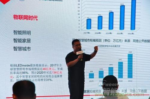 上海浦東智能照明聯(lián)合會(huì)秘書長(zhǎng)代照亮則為現(xiàn)場(chǎng)觀眾帶來了物聯(lián)網(wǎng)時(shí)代智能照明領(lǐng)域的最新進(jìn)展。根據(jù)最新數(shù)據(jù)顯示,2017年全球智慧照明市場(chǎng)規(guī)模接近46億美元,年成長(zhǎng)率高達(dá)95%,預(yù)計(jì)2020年可達(dá)134億美元,其中智慧家居照明的應(yīng)用將會(huì)逐漸普及,預(yù)估2020年占比將增至31%。