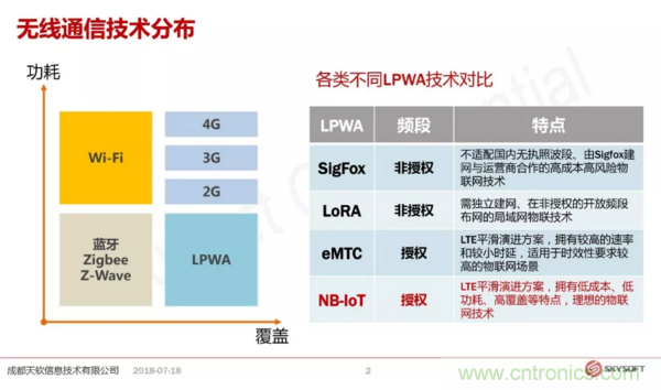【導(dǎo)讀】CEDA近日在成都舉辦的West China IoT Forum-2018工業(yè)物聯(lián)網(wǎng),車聯(lián)網(wǎng)與5G技術(shù)峰會(huì),特邀業(yè)界專家分析技術(shù)方案和趨勢。成都天軟信息技術(shù)有限公司(Skysoft,簡稱天軟信息)產(chǎn)品總監(jiān)黃斌在峰會(huì)上做了《NB-IoT技術(shù)方案與行業(yè)應(yīng)用》的報(bào)告,擁有豐富物聯(lián)網(wǎng)和通信網(wǎng)絡(luò)行業(yè)經(jīng)驗(yàn)的黃斌,介紹了無線通信技術(shù)分布,對比了各類不同LPWA技術(shù),分析了NB-IoT的部署及傳輸模式,NB-IoT的生態(tài)鏈,天軟信息模組方案,行業(yè)應(yīng)用案例以及未來發(fā)展方向。