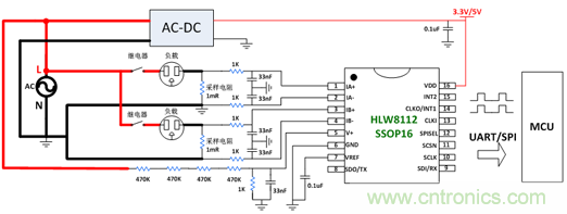 圖5 HLW8112的2通道測量應(yīng)用電路