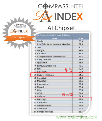 在全球前20名的AI芯片企業(yè)排名表中,中國大陸占據(jù)兩個席位,分別是華為和瑞芯微,下面我們從他們的產(chǎn)品布局與生態(tài)鏈戰(zhàn)略來看看上榜的理由。
