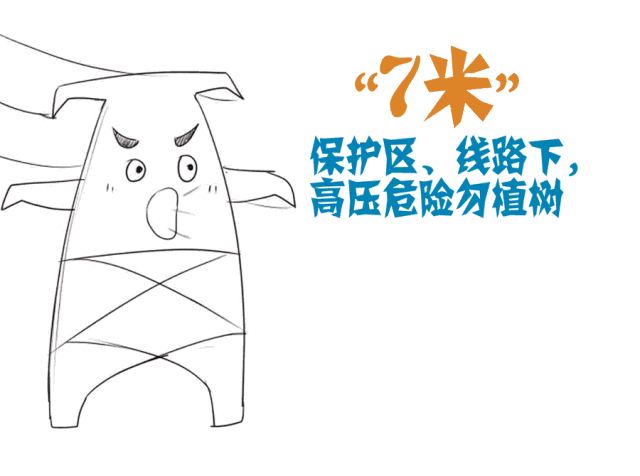 1、“7米”——保護(hù)區(qū)、線路下 ,高壓危險(xiǎn)勿植樹