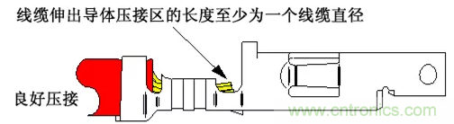 如果剝線長度過短,或者線纜沒有完全插入導(dǎo)體指定的壓接區(qū),端接有機會不能達(dá)到規(guī)定的拉拔力, 因為線纜與端子之間的金屬接觸減少了。