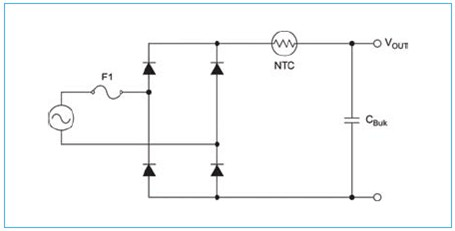 NTC 存在的另一個(gè)主要問(wèn)題就是其熱堆積 (thermal mass) 或時(shí)間響應(yīng)。如果電源電壓暫時(shí)下降或電源電壓長(zhǎng)時(shí)間嚴(yán)重欠壓,而此時(shí)大容量電容器又切斷對(duì)其的有效充電,那么將會(huì)引發(fā)問(wèn)題。當(dāng)線電壓恢復(fù)正常時(shí),NTC 或許還未能獲得足夠的冷卻時(shí)間,這樣將使其處于低阻抗?fàn)顟B(tài)。在這種情況下,由于線電壓的恢復(fù)而產(chǎn)生比正常情況下更高的浪涌電流,甚至比初次啟動(dòng)時(shí)產(chǎn)生的浪涌電流還要高。此時(shí),電路無(wú)任何保護(hù)措施。這種超乎尋常的大電流會(huì)損壞電路中傳動(dòng)系元件,如保險(xiǎn)絲、焊點(diǎn)、線跡以及路徑中的所有元件。