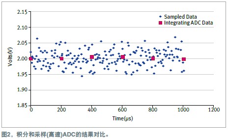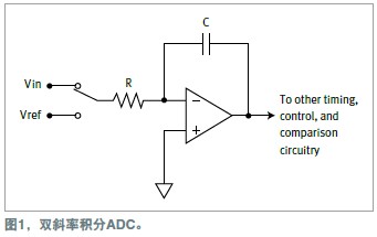 傳統(tǒng)上精密的SMU(信號源測量單元)均采用了積分式的模擬/數(shù)字變換器(ADC),這可以讓信號在一定時間間隔(稱為積分時間)內(nèi)平均。圖1描述了一種經(jīng)過簡化的雙斜率積分ADC,其基本工作原理是用未知的信號對電容充電,然后在基準(zhǔn)電壓下讓電容放電。充電和放電的時間的比例與未知信號與基準(zhǔn)信號間的比例成正比。雖然這一ADC技術(shù)可以提供很高的精度和對噪聲的出色耐受能力,但電容的充電-放電循環(huán)會造成測量的間隔過長(至少50µs),這會讓測量速度大大降低。相比之下,高速ADC能夠以高達(dá)1MHz的猝發(fā)速率來對信號進(jìn)行采樣。與積分ADC不同的是,這些高速的ADC采用了類似于示波器的采樣技術(shù),即可以獲取隨時間變化的信號的快照。它們可以提供高于示波器的分辨率(分別為18位和8位),從而可以以與之相當(dāng)?shù)膸拋硗瓿筛_的瞬態(tài)特性測量。