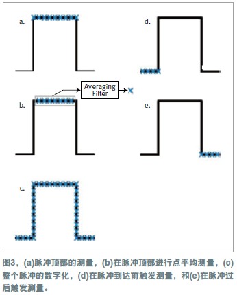 異步的觸發(fā)對于在脈沖頂部進(jìn)行的點(diǎn)平均測量而言非常有效(圖3b)。人們往往要用分析軟件來對采樣數(shù)據(jù)進(jìn)行平均,以改善精度,但更新的SMU設(shè)計(jì)提供了平均和中值濾波器,它們可以作用于高速ADC的讀數(shù),從而使之返回點(diǎn)平均測量。