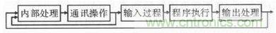在延遲控制中,傳統(tǒng)的繼電器控制技術依靠設備的滯后性實現(xiàn),定時精度較差,在操作時不易調整時間。而PLC監(jiān)視控制是時鐘脈沖由晶體振蕩器引起的,可操控時間,且精度較高。PLC控制雖與微電腦技術相似,但工作方式卻不同。PLC技術采用循環(huán)掃描,而微機則采用鍵盤掃描,圖1是PLC技術的工作掃描方式。