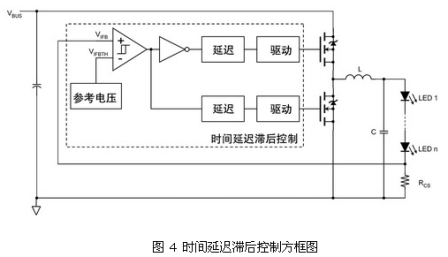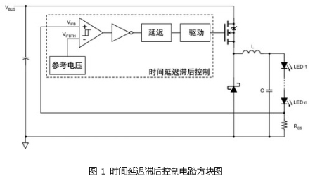 接地參考的傳感電阻簡化了電流傳感電路,但在降壓轉(zhuǎn)換器中需要高壓驅(qū)動電路。要避免使用隔離變壓器,在設(shè)計中必須選擇高邊檢測和低電壓驅(qū)動電路,或者低邊檢測和高壓驅(qū)動電路。實現(xiàn)后者的一種有效方法是,采用有時間延遲滯后控制的高壓降壓驅(qū)動電路(見圖 1)。