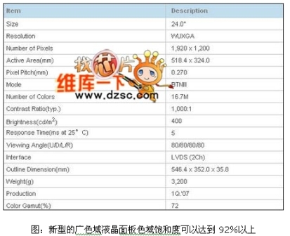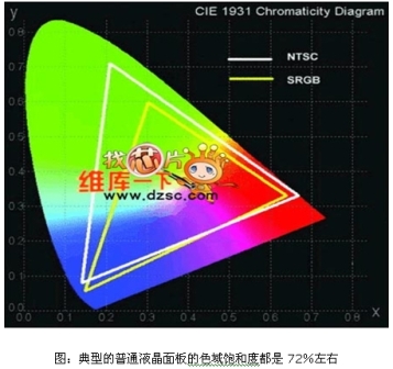 色域的呈現(xiàn)主要在背光的選擇上,眾所周知,液晶面板本身并不發(fā)光,而是必須透過背光的光線才能夠顯示畫面,傳統(tǒng)CCFL燈管在螢光材質上的限制,紅光呈現(xiàn)能力偏弱,加上所搭配的彩色濾光片的混色效果較差,最終呈現(xiàn)的色域飽和度不佳,導致目前主流的LCD監(jiān)視器或電視在色域呈現(xiàn)能力上不足,多僅能達到72%NTSC左右。