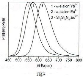 [page]2007年日本材料科學(xué)研究所納米陶瓷中心得到的結(jié)果是最高的[3],他們采用中心波長為450nm的InGaN藍(lán)光LED和光子轉(zhuǎn)換效率高、在450nm藍(lán)光范圍 有強(qiáng)吸收峰、溫度系數(shù)低的三種熒光粉進(jìn)行了試驗(yàn),這三種熒光粉分別為:α-sialon: Yb2+、α-sialon: Eu2+和Sr2Si5 N8: Eu2+。這些熒光粉的特點(diǎn)是發(fā)光效率的熱衰減較小,在
