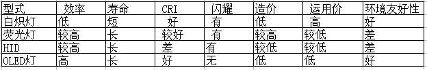 OLED燈的特點(diǎn)及與現(xiàn)有光源的比較