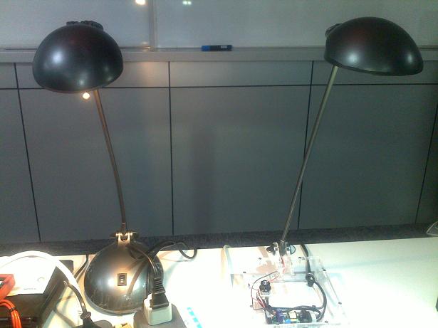圖3.左邊為鹵素臺燈,右邊為LED模塊做的臺燈