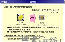 • 第二類產(chǎn)品在底板上配備幾十個輸出功率比較低的LED芯片,并設(shè)置了布線端子