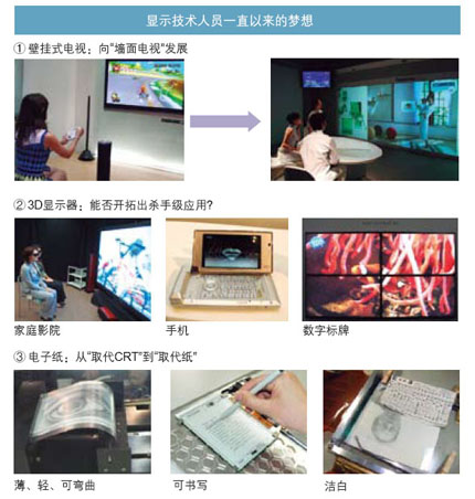 顯示器領(lǐng)域的技術(shù)人員一直以來都有三個(gè)夢(mèng)想:壁掛式電視、3D顯示器及電子紙(見圖4)。