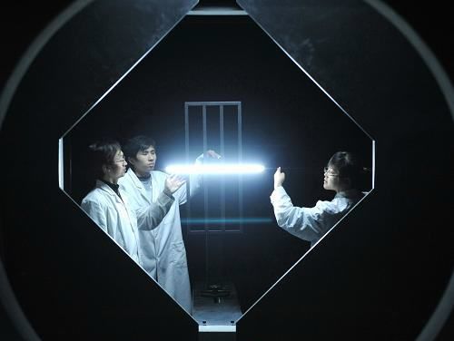 圖:技術(shù)人員在測(cè)試LED照明燈