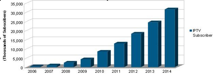 IPTV用戶增長將主要來自中國廣播運(yùn)營商擴(kuò)大布署的努力。這些運(yùn)營商擁有非常寶貴的IPTV牌照。