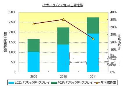 公共顯示器以數(shù)字標(biāo)牌(電子看板)為代表。在機(jī)場、車站、購物中心以及商業(yè)區(qū)等公共場所顯示和發(fā)送信息的公共顯示器市場,作為繼筆記本電腦、顯示器和電視機(jī)之后的第四個(gè)大屏幕FPD市場,今后有望出現(xiàn)增長。