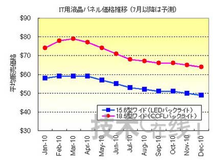圖1:IT用液晶面板價(jià)格走勢(shì)(7月份以后為預(yù)測(cè)值)