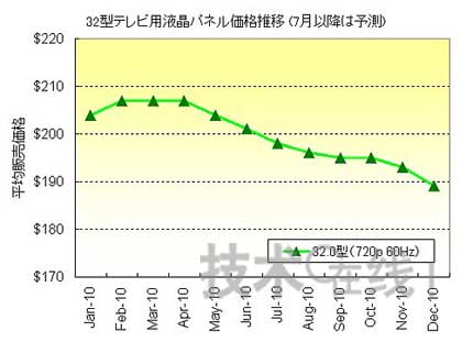 考慮到電視機(jī)廠商的面板以及完成品的庫(kù)存調(diào)整沒(méi)有取得進(jìn)展,針對(duì)2010年下半年的需求期,面板供貨量本身的增加將趨于緩和。包括暢銷(xiāo)的32英寸電視機(jī)面板、筆記本電腦用面板和顯示器用面板在內(nèi),液晶面板的庫(kù)存調(diào)整將很有可能從7月份持續(xù)到8月份。因此,8月份的面板價(jià)格不會(huì)反彈,將與上月持平(價(jià)格維持)或繼續(xù)保持小幅調(diào)整。而且,很有可能從季節(jié)需求告一段落的11月前后開(kāi)始加速下滑。另外,筆者想事先補(bǔ)充的一點(diǎn)是:如果9月份以后面板及完成品繼續(xù)進(jìn)行存調(diào)整,那么不用等到11月,面板價(jià)格就有可能開(kāi)始加速下滑。