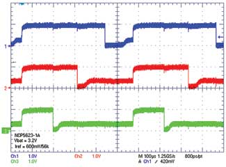 圖5中的波形源自工業(yè)應(yīng)用,它展示了嵌入在所選器件中的三個(gè)PWM的特性。三個(gè)LED采用一個(gè)共同低頻時(shí)鐘控制,并帶有一個(gè)占空比設(shè)置來(lái)適應(yīng)給定應(yīng)用。這很明顯能夠獨(dú)立地減弱或增強(qiáng)每個(gè)PWM,范圍在0~100%的占空比之間,而ILED峰值電流為恒定。