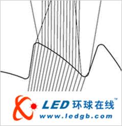 進一步分析知道,由于LED光源是在光軸部分的發(fā)光強度大,邊緣部分小,而分厚度法得到的鋸齒恰恰是在中間部分比在邊緣部分有更大的齒距(見圖3),因此在光強度大的地方損失會少,即總體上可以有更少的光損失。