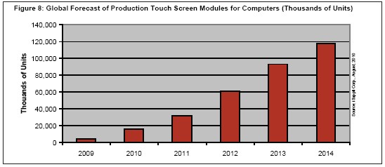 • 2010年用于電腦的觸摸屏模組產(chǎn)量1580萬個